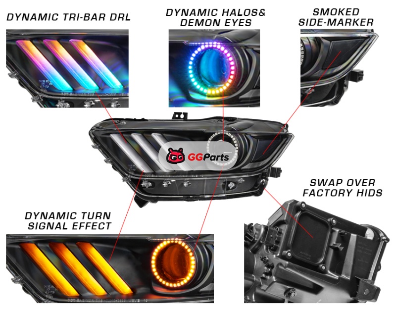 Oracle 15-17 Ford Mustang Dynamic RGB+A Pre-Assembled Headlights - Black Edition - SEE WARRANTY