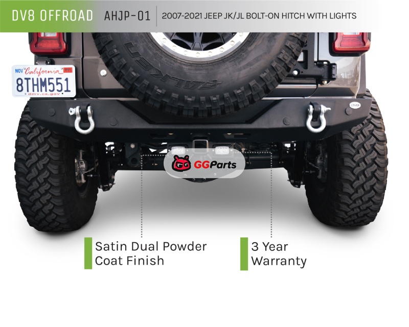 DV8 Offroad 07-21 Jeep Wrangler (JK/JL) Bolt-On Hitch w/ Lights