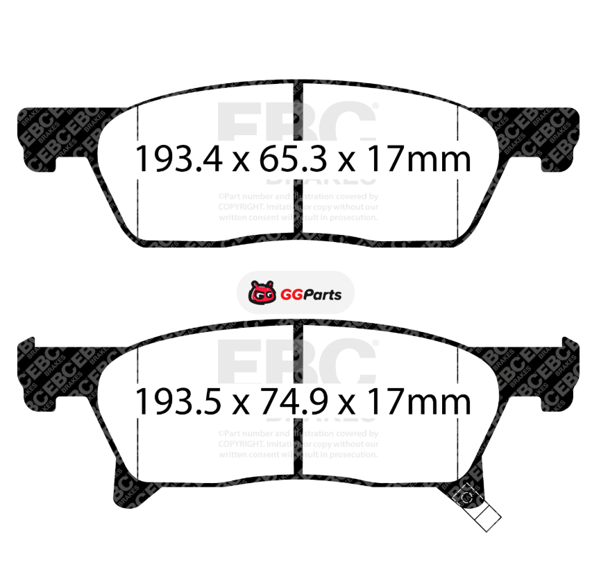 EBC Yellowstuff (4000 Series) флагманские тормозные колодки с высоким коэффициентом трения, предназначенные для активной езды по дорогам общего пользования, тяжелых внедорожников и периодических выездов на трек.