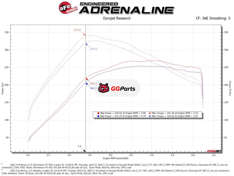 aFe Momentum GT Cold Air Intake System w/ Pro DRY S Filter Ford Bronco 2021 V6-2.7L (tt)