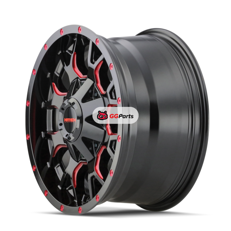 Mayhem 8015 Warrior 20x9 / 5x150 BP / 0mm Offset / 110mm Hub Black w/ Prism Red Wheel