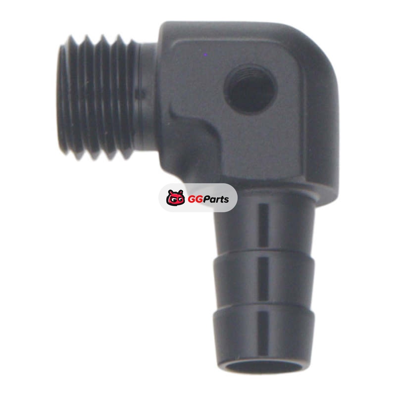DeatschWerks Metric M12 to 3/8in Hose Barb 90-Degree Fitting w/ Venturi Port - Anodized Matte Black
