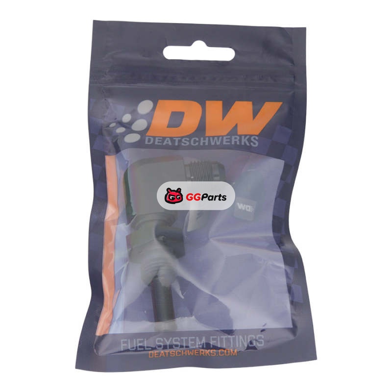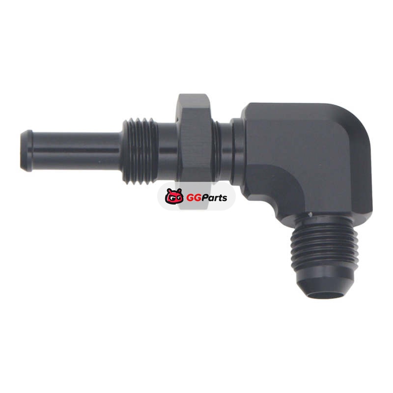 DeatschWerks 6AN Male Flare to 5/16in Male Barb Bulkhead Adapter 90-Degree - Anodized Matte Black