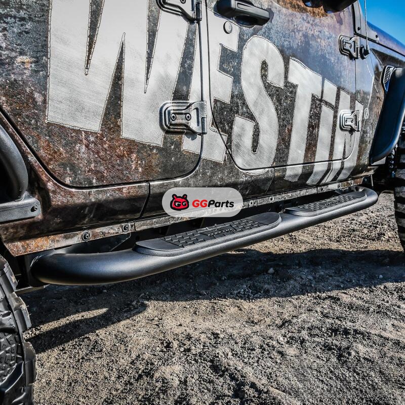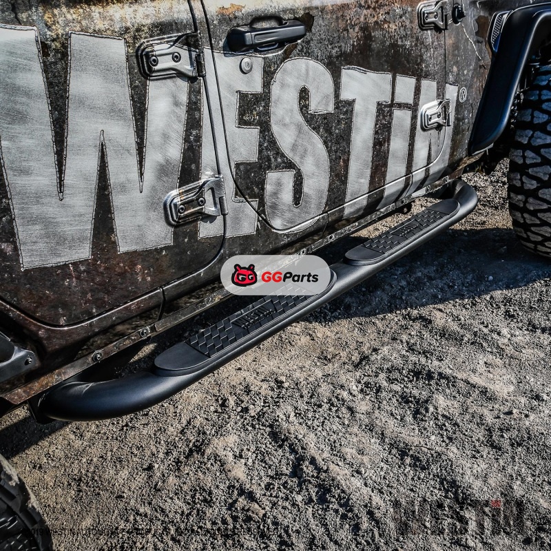 Westin 18-22 Jeep Wrangler JLU 4dr Platinum 4 Oval Nerf Step Bars - Tex. Blk