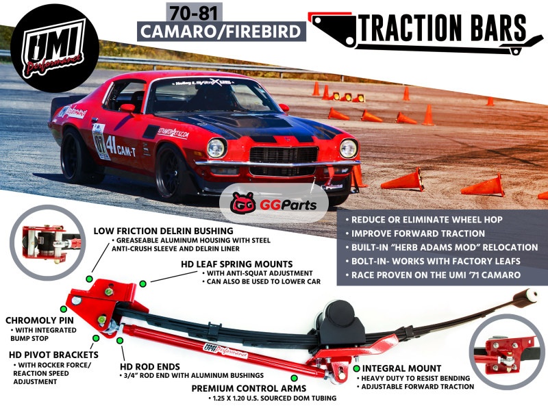 UMI Performance 70-81 GM F-Body Leaf Spring Traction Bars with Mounts