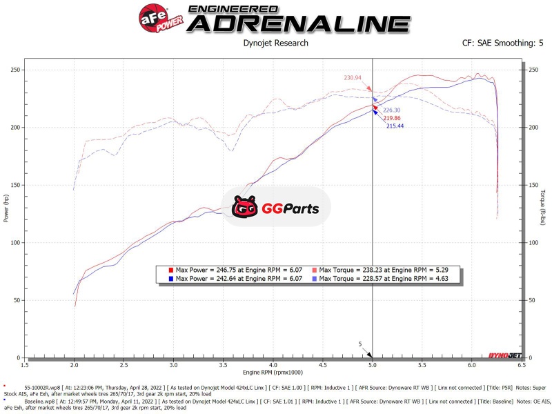 aFe Super Stock Induction System Pro 5R Media 16-22 Toyota Tacoma V6 3.5L