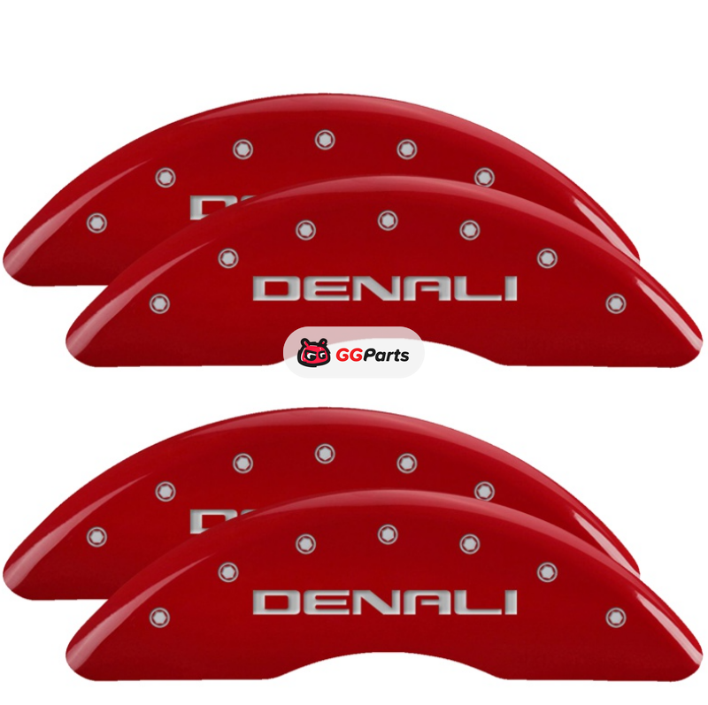 MGP 4 Caliper Covers Engraved Front & Rear Red Finish Silver Characters for 20-22 GMC Sierra 2500HD