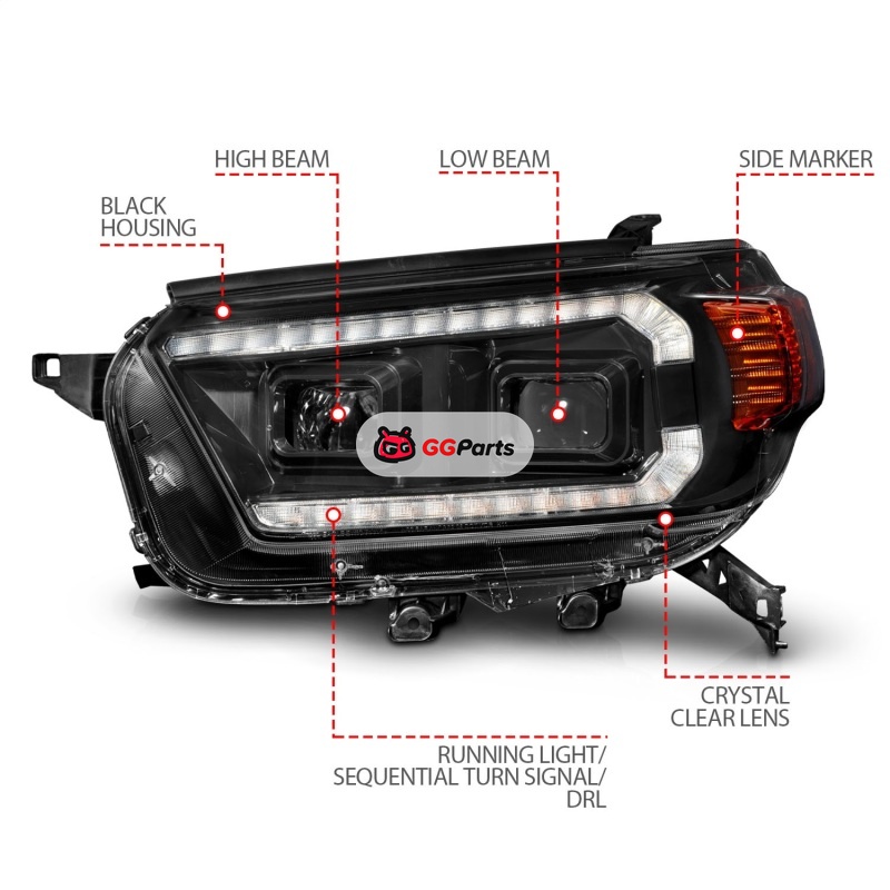 ANZO 10-13 Toyota 4Runner Projector Headlights - Black