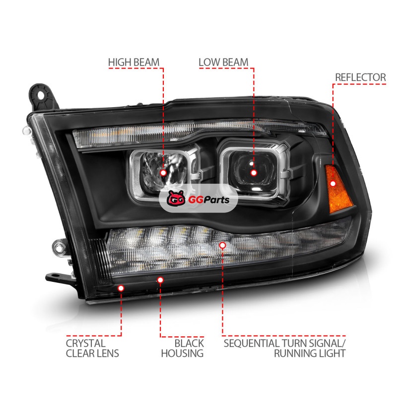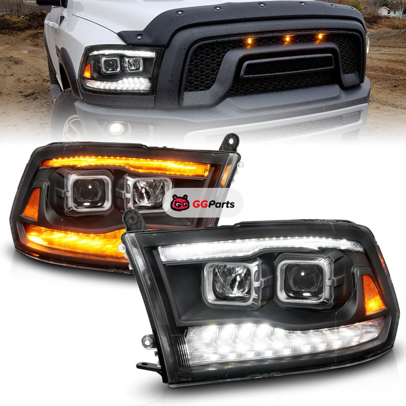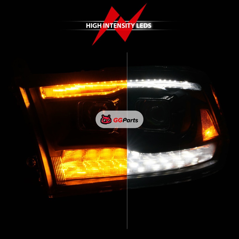 ANZO 09-18 Dodge Ram 1500/2500/3500 Proj HL Headlights Switchback + Sequential - Black Amber