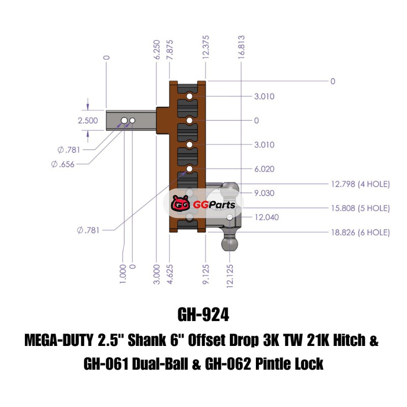 Gen-Y Mega Duty 2.5in Shank 6in Offset Drop 21K Hitch w/GH-061 Dual-Ball/GH-062 Pintle Lock