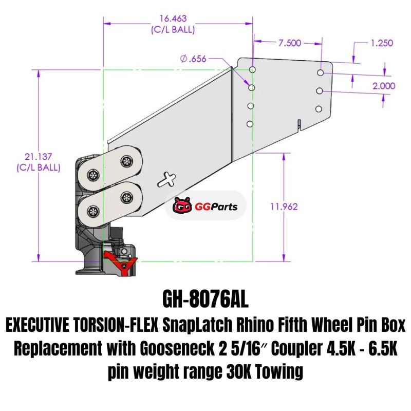 Gen-Y Executive Torsion-Flex Auto Rhino 5th Wheel Pin Box Rep w/Gooseneck 2-5/16in Coupler