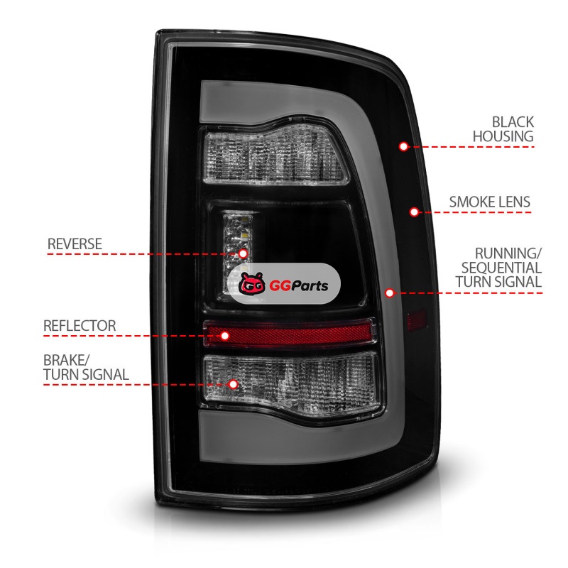 ANZO 09-18 Dodge Ram 1500 Sequential LED Taillights Smoke Black