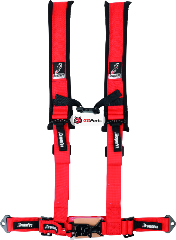 DragonFire Racing Harness- H-Style- 4-Point- 2in Buckle- Red