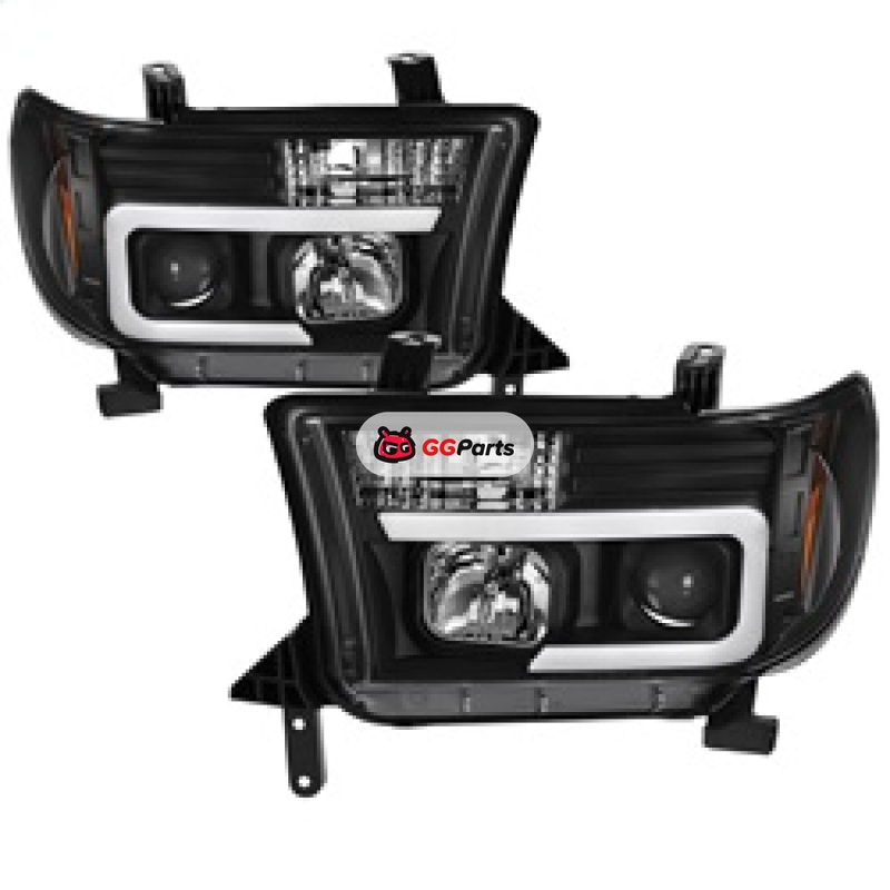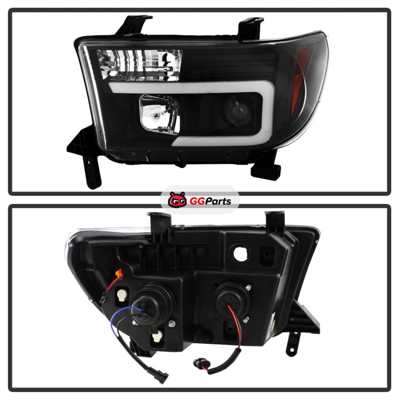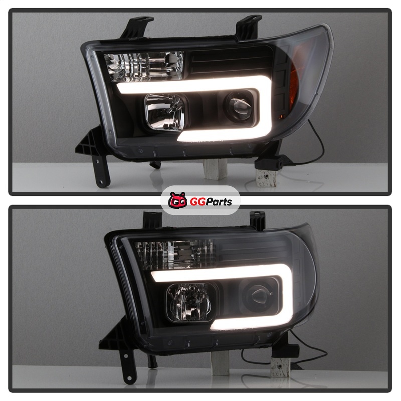 Spyder 08-13 Toyota Sequoia Projector Headlights - Light Bar DRL - Black PRO-YD-TTU07V2-LB-BK