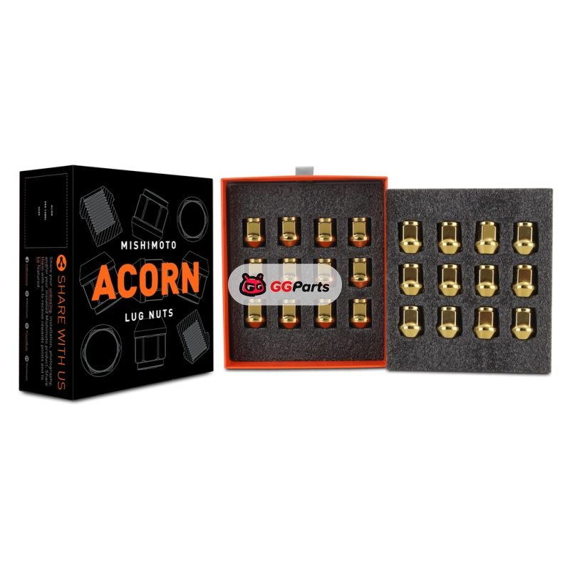 Mishimoto Steel Acorn Lug Nuts M14 x 1.5 - 24pc Set - Gold