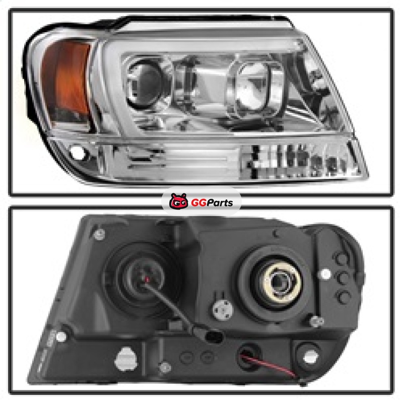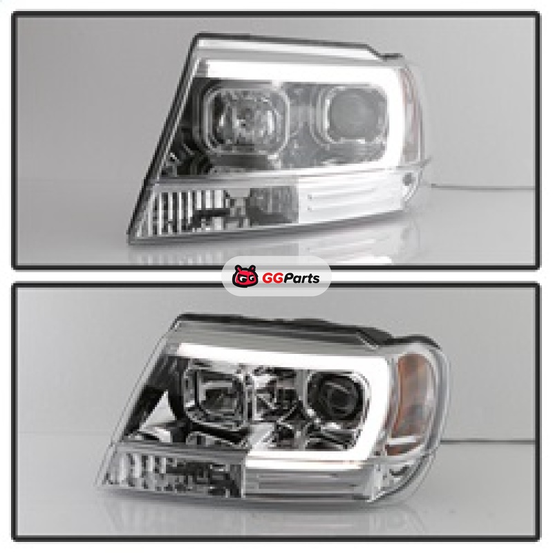 Spyder 99-04 Jeep Grand Cherokee Projector Headlights - Light Bar DRL LED - Chrome