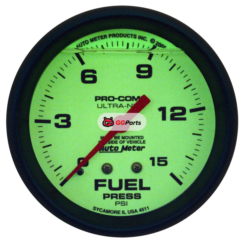 Autometer Ultra-Nite 2-5/8in 15psi Mechanical Glow In The Dark Fuel Pressure Gauge