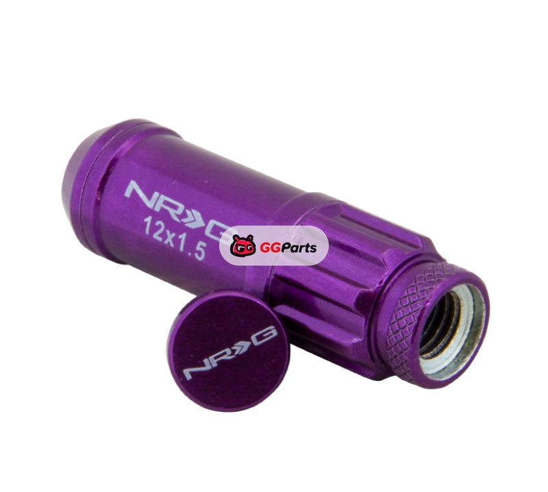 NRG 700 Series M12 X 1.5 Steel Lug Nut w/Dust Cap Cover Set 21 Pc w/Locks & Lock Socket - Purple