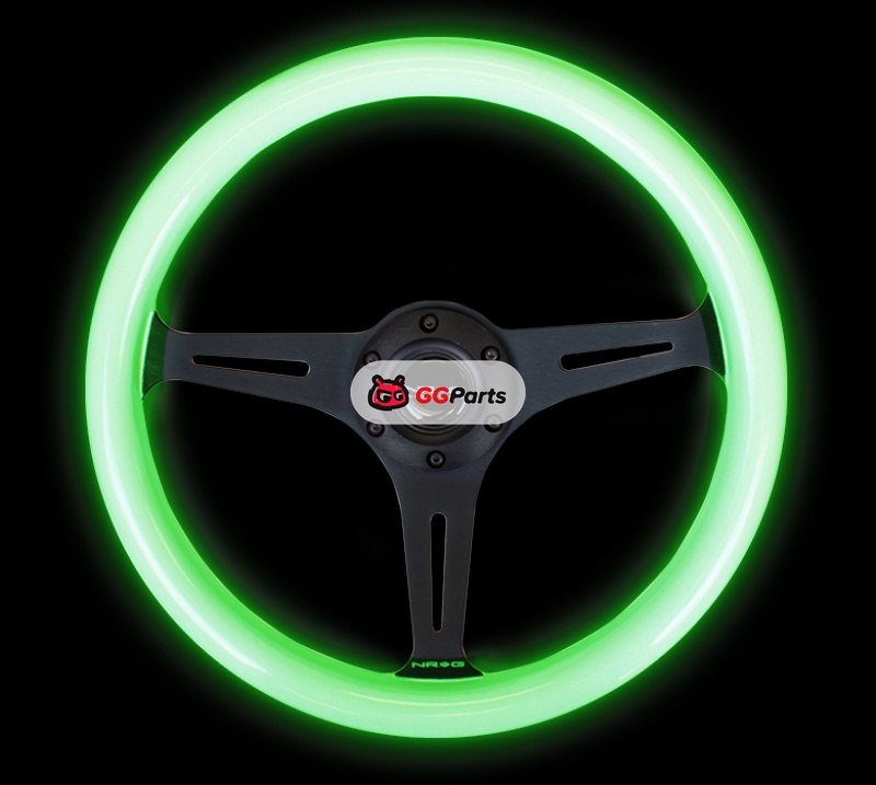 NRG Classic Wood Grain Steering Wheel (350mm) Glow-N-The-Dark Green Grip w/Black 3-Spoke Center