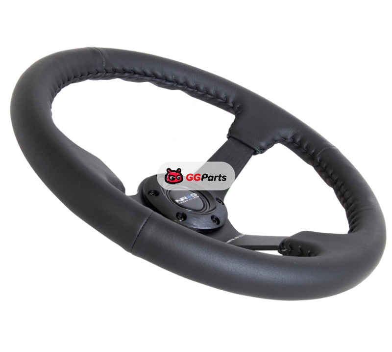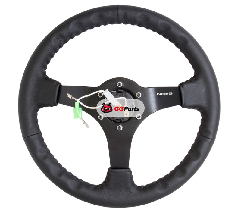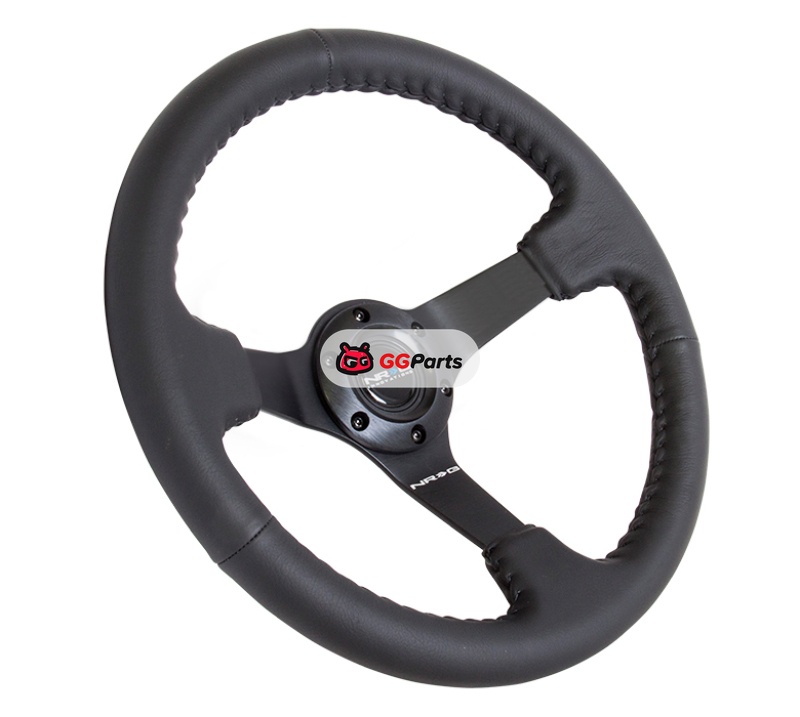 NRG Reinforced Steering Wheel (350mm / 3in. Deep) Bk Leather w/Bk BBall Stitch (Odi Bakchis Edition)