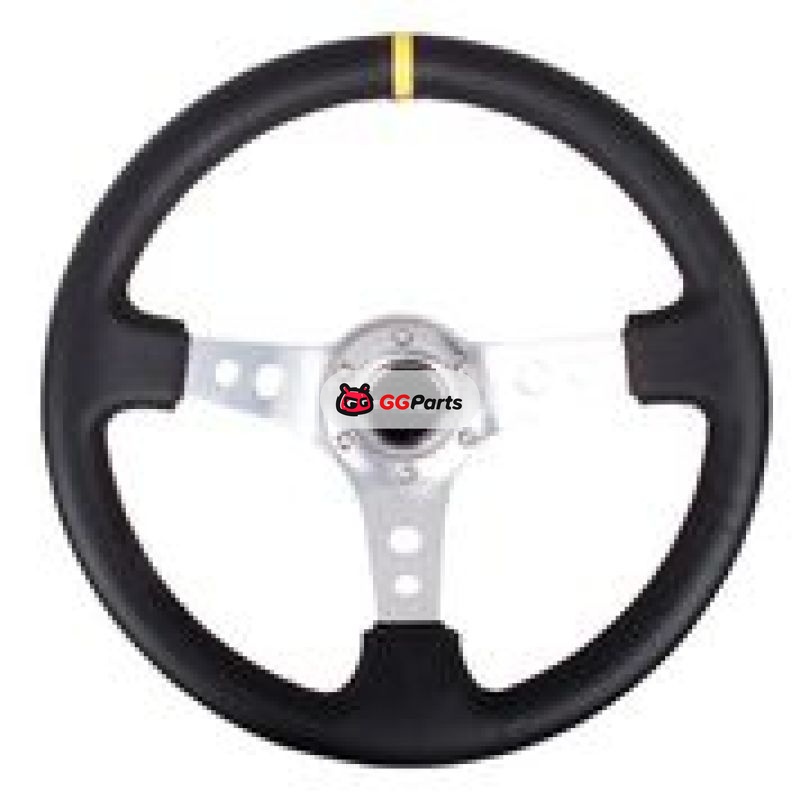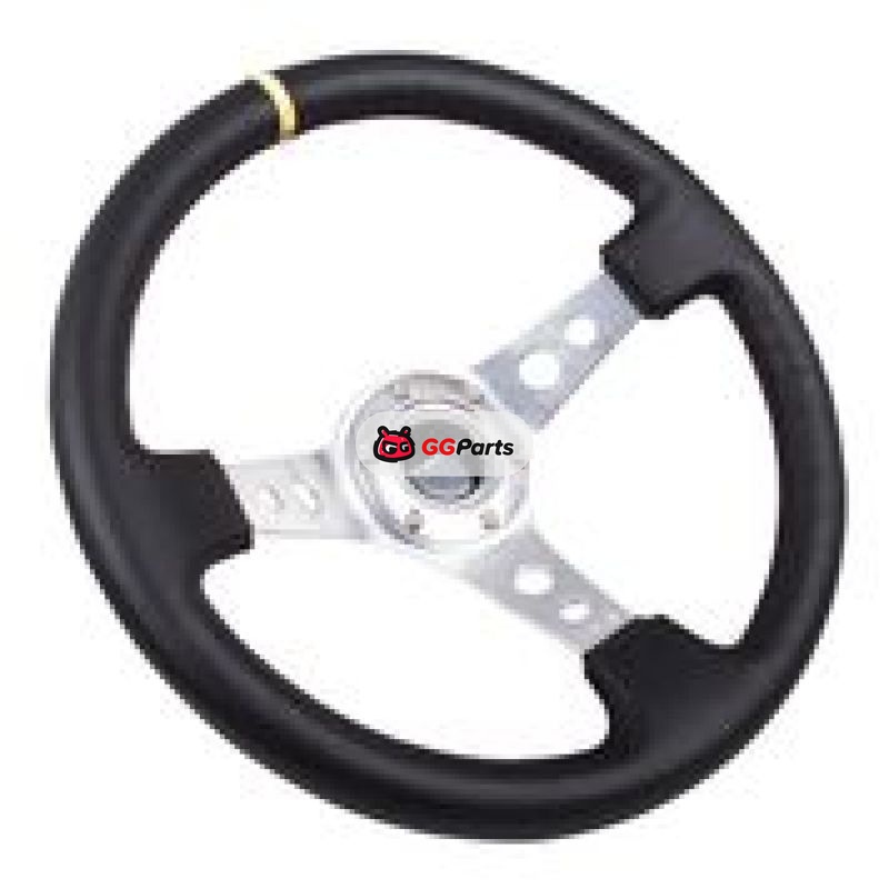 NRG Reinforced Steering Wheel (350mm / 3in. Deep) Blk Leather w/Circle Cut Spokes & Single Yellow CM