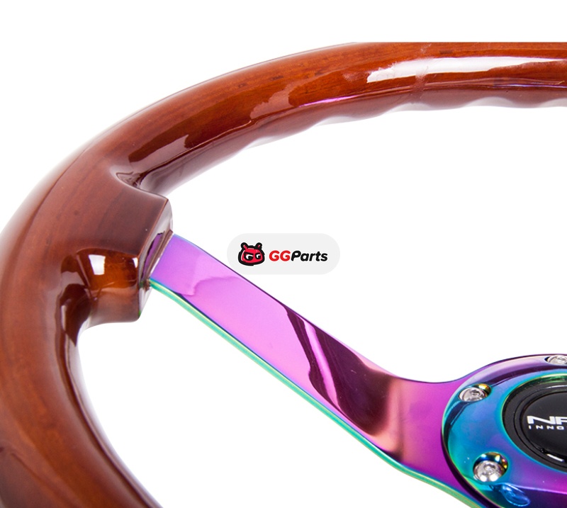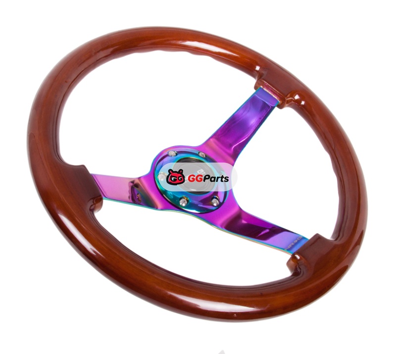 NRG Reinforced Steering Wheel (350mm / 3in. Deep) Classic Dark Wood w/4mm Neochrome Solid 3-Spoke
