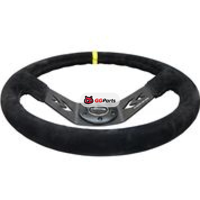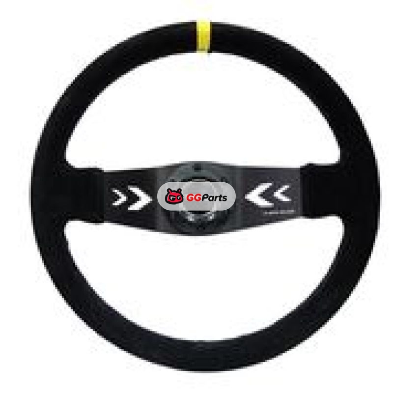 NRG Reinforced Steering Wheel (350mm / 3in. Deep) Blk Suede w/NRG Arrow Cut 2-Spoke & Yellow Mark