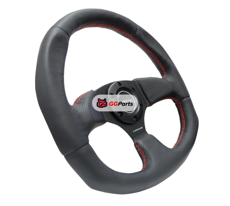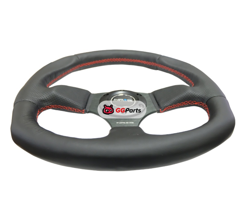 NRG Reinforced Steering Wheel (320mm Horizontal / 330mm Vertical) Leather w/Red Stitching