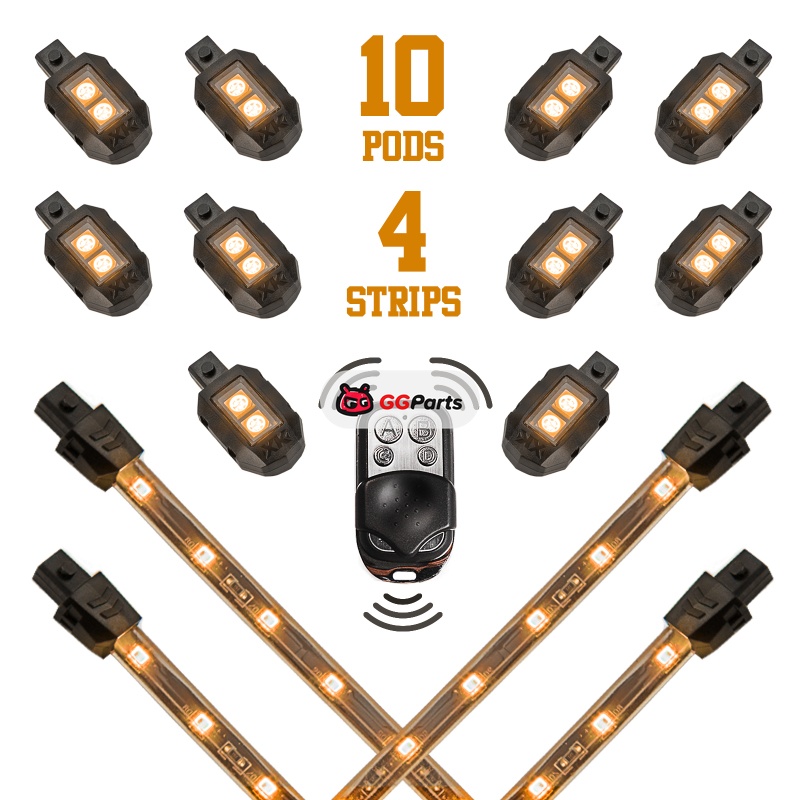 XK Glow Strips Single Color XKGLOW LED Accent Light Motorcycle Kit Amber - 10xPod + 4x8In