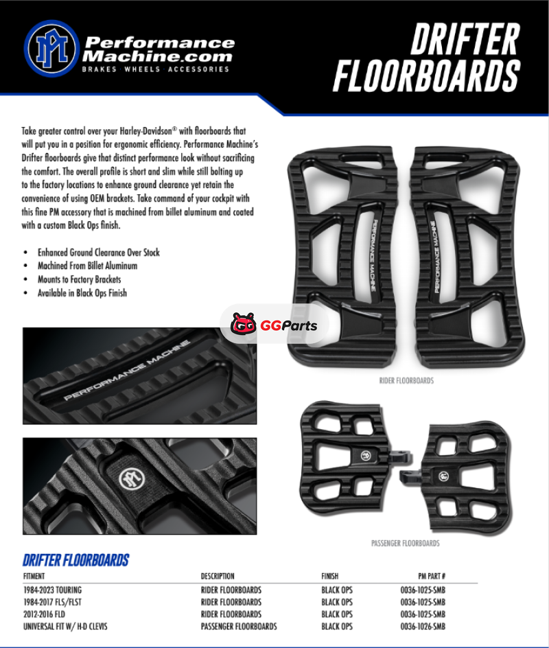 Performance Machine Floorboard Assembly Rider Drifter - Black Ops