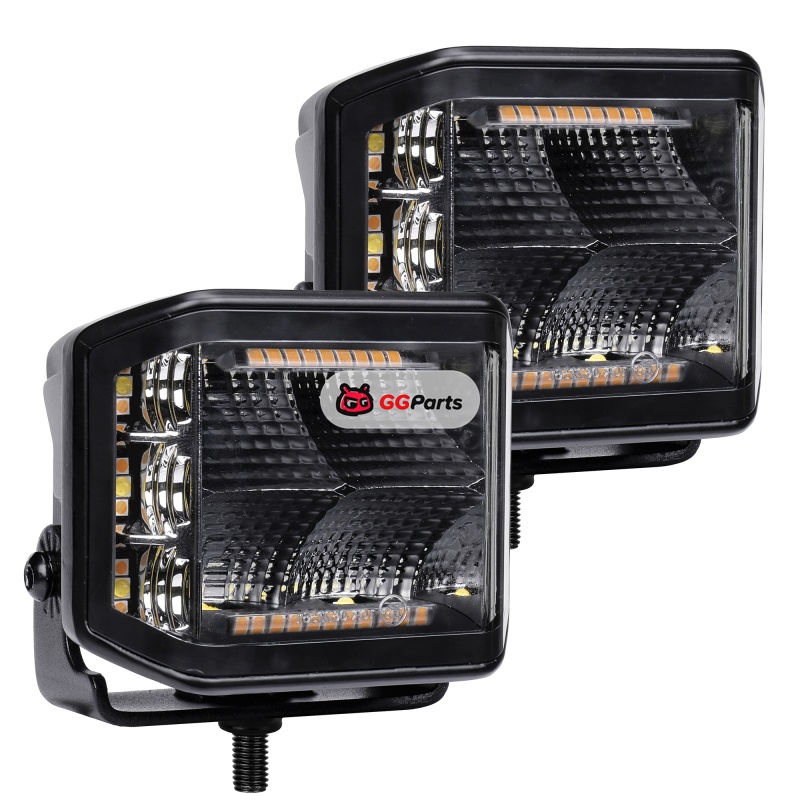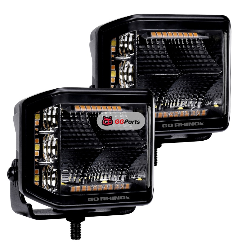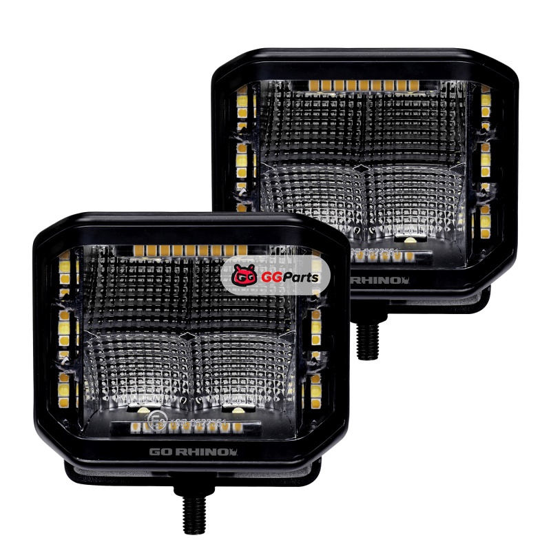 Go Rhino Xplor Blackout Combo Series Cube Sideline LED Flood Lights w/Amber 4x3 - Blk (Pair)