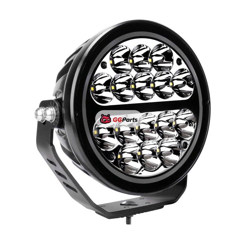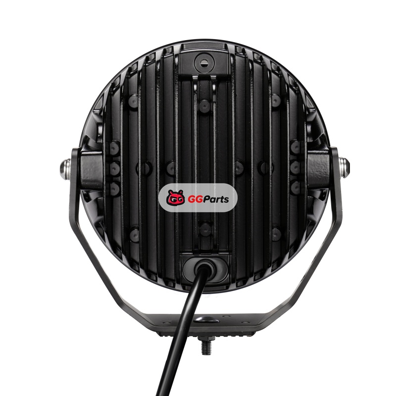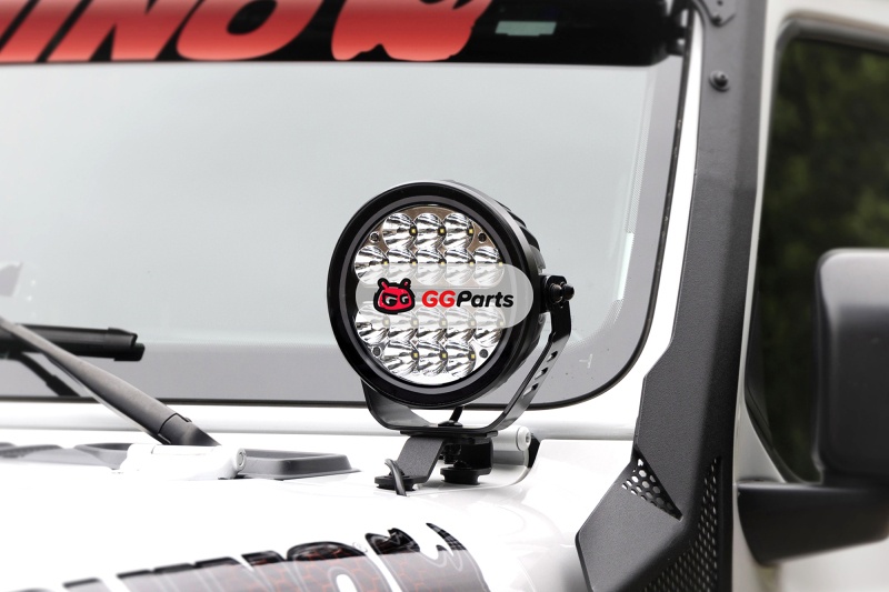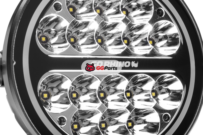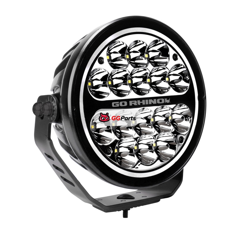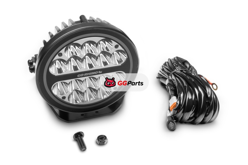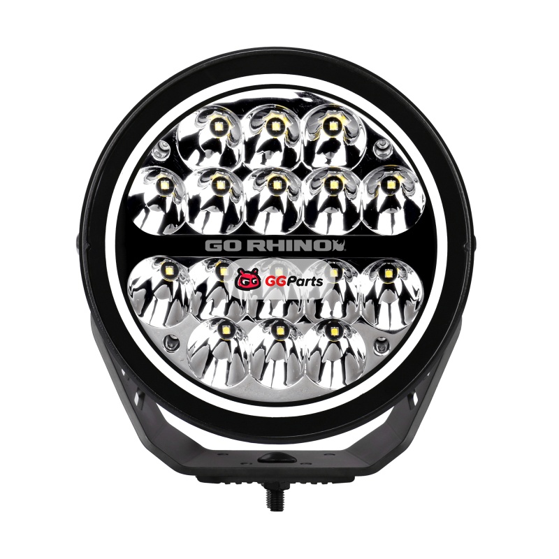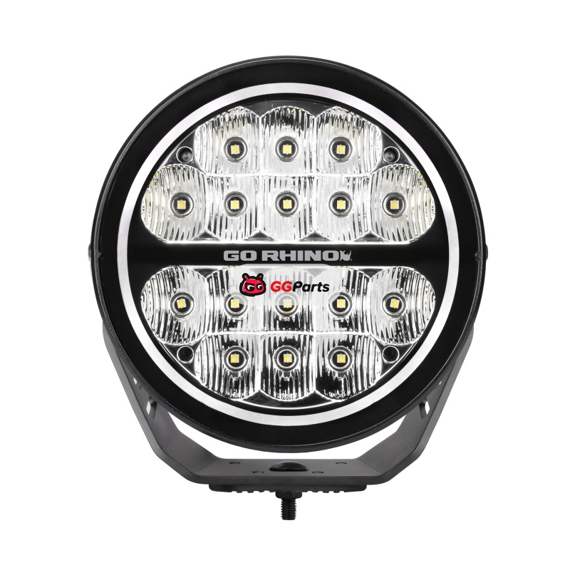 Go Rhino Xplor Blackout Series Round LED Spot Light Beam w/DRL (Surface/Thread Stud Mnt) 7in. - Blk