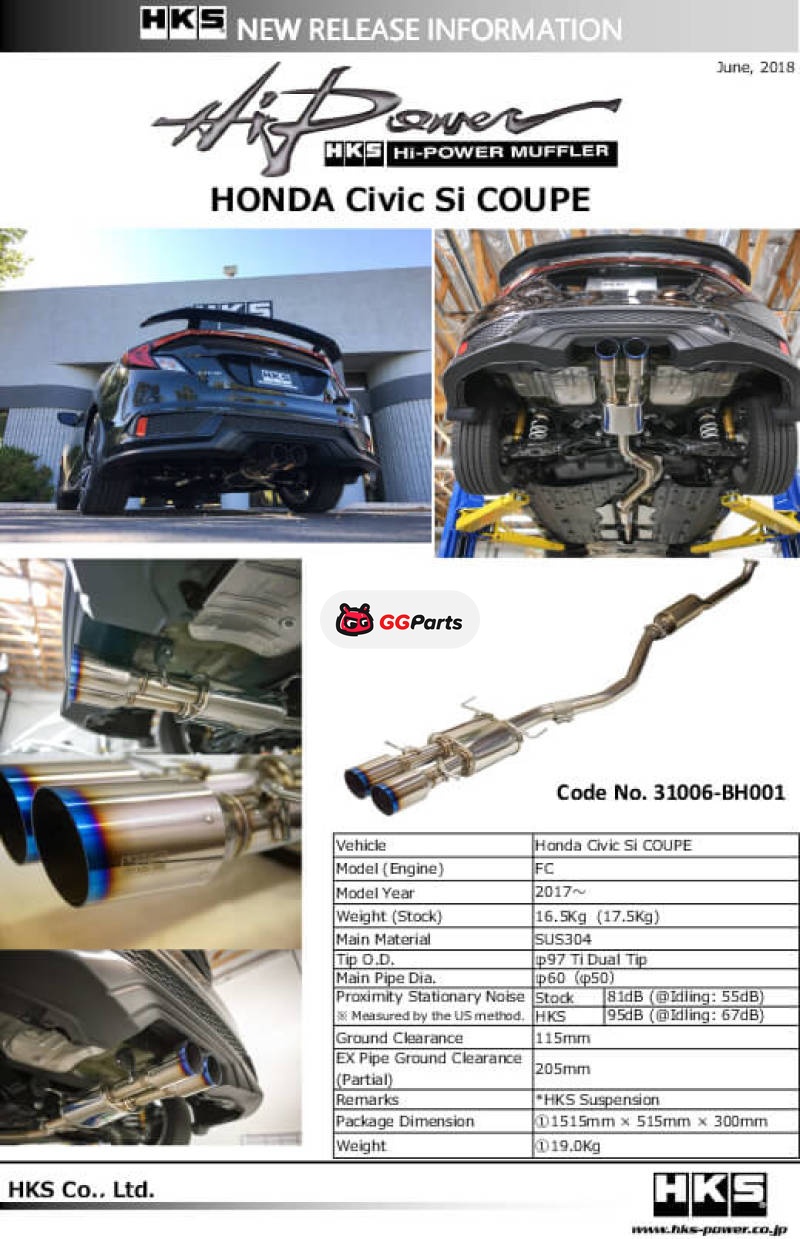 HKS Hi-Power Muffler for Civic SI Coupe (FC3)