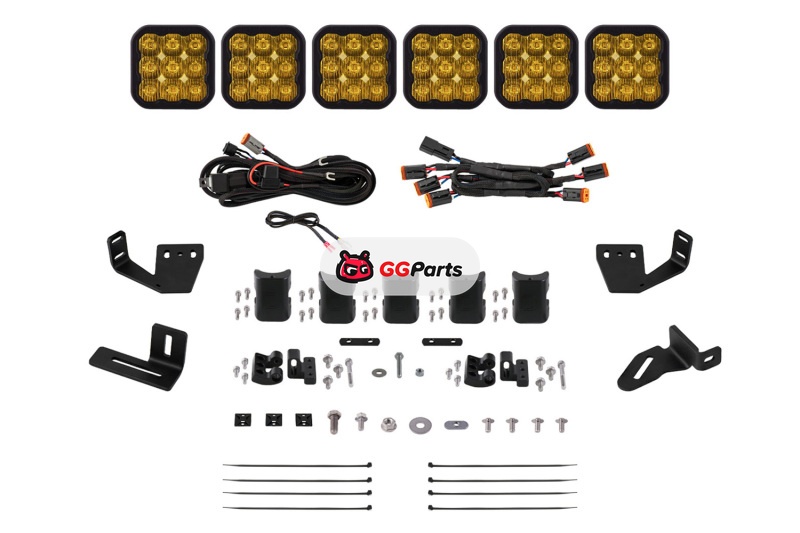 Diode Dynamics Prinsu/Sherpa Roof Racks SS5 6-Pod CrossLink Mounting Kit - Sport Yellow Driving
