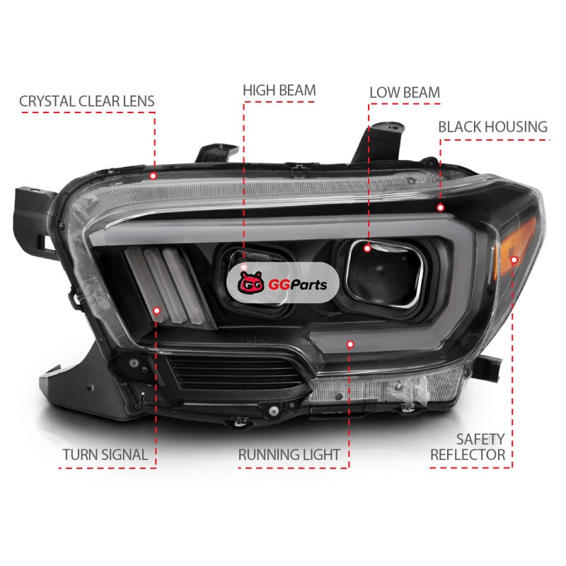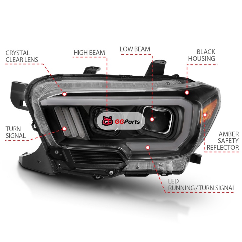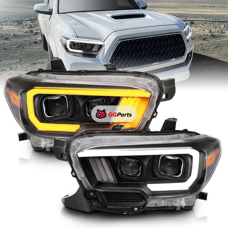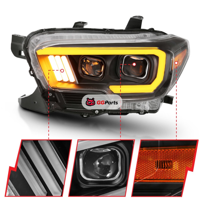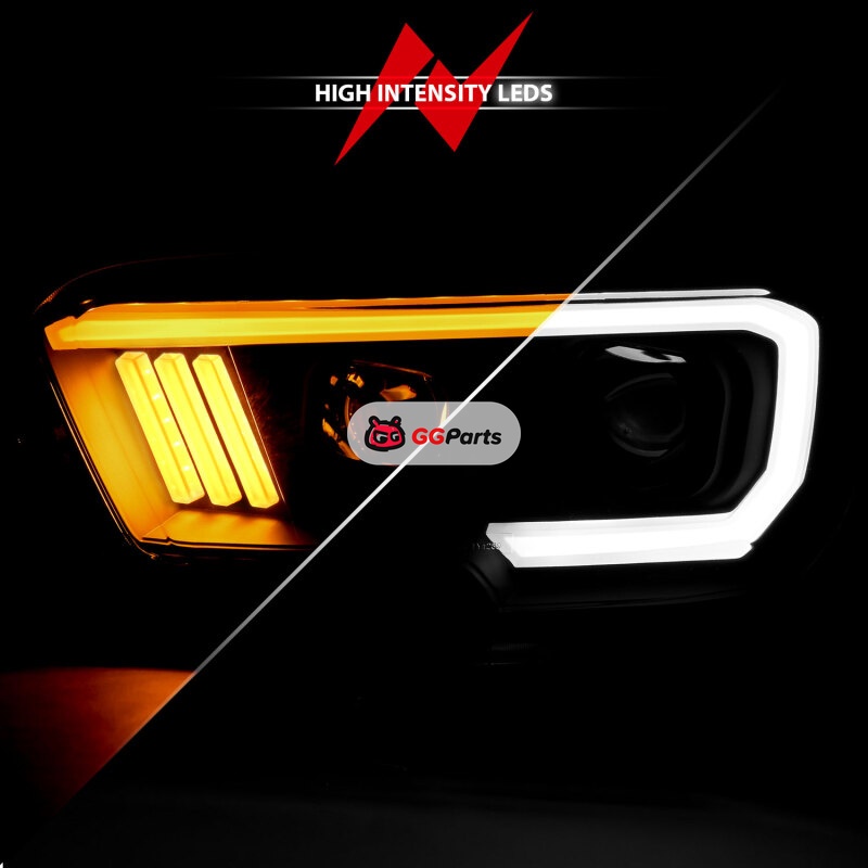 ANZO 2016-2017 Toyota Tacoma Projector Headlights w/ Plank Style Switchback Black w/ Amber