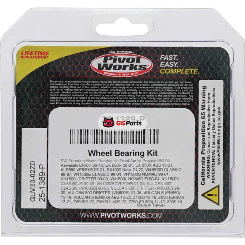 Pivot Works Aprilia, Kawasaki, Triumph Wheel Bearing Kit Premium Bearings