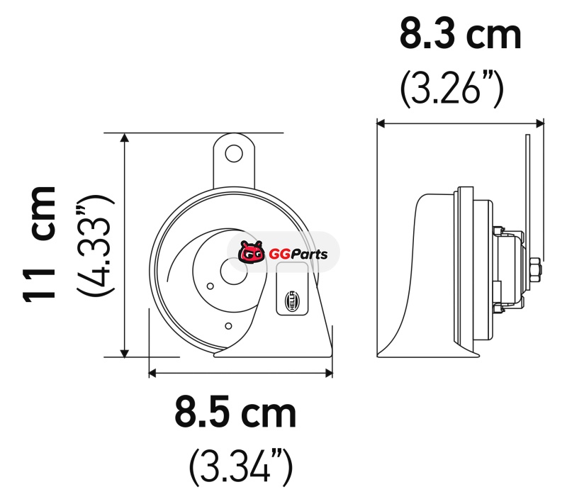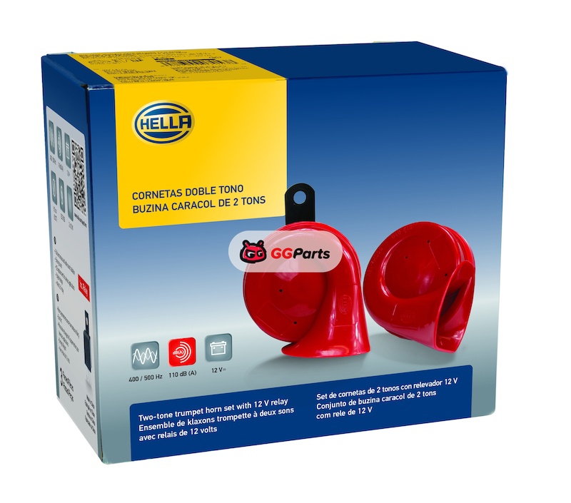 Hella Twin Trumpet Horn Kit 12V 400/500Hz (007424804 = 007424801)