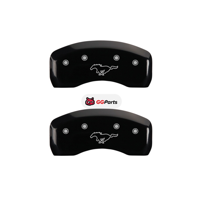 MGP 4 Caliper Covers Engraved Front Mustang Engraved Rear Pony Black finish silver ch