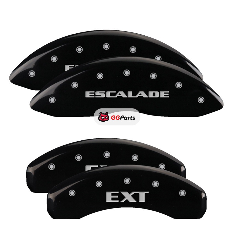 MGP 4 Caliper Covers Engraved Front Escalade Engraved Rear EXT Black finish silver ch