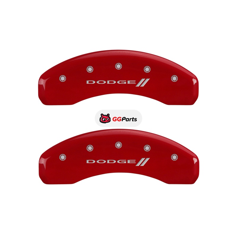 MGP 4 Caliper Covers Engraved Front & Rear With stripes/Dodge Red finish silver ch