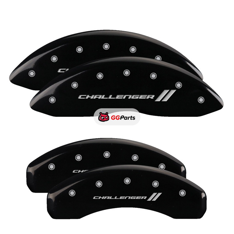 MGP 4 Caliper Covers Engraved Front & Rear With stripes/Challenger Black finish silver ch