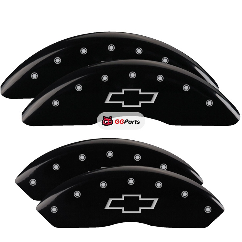 MGP 4 Caliper Covers Engraved Front & Rear Bowtie Black finish silver ch