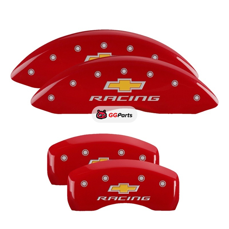 MGP 4 Caliper Covers Engraved Front & Rear Chevy racing Red finish silver ch