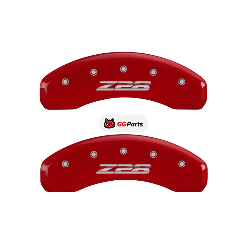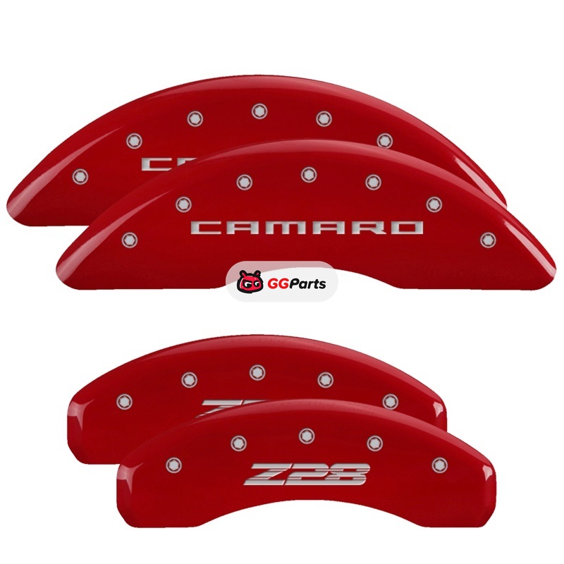 MGP 4 Caliper Covers Engraved Front Gen 5/Camaro Engraved Rear Gen 5/Z28 Red finish silver ch