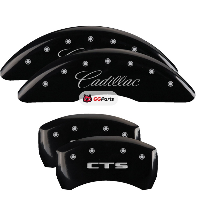 MGP 4 Caliper Covers Engraved Front Cursive/Cadillac Engraved Rear CTS Black finish silver ch