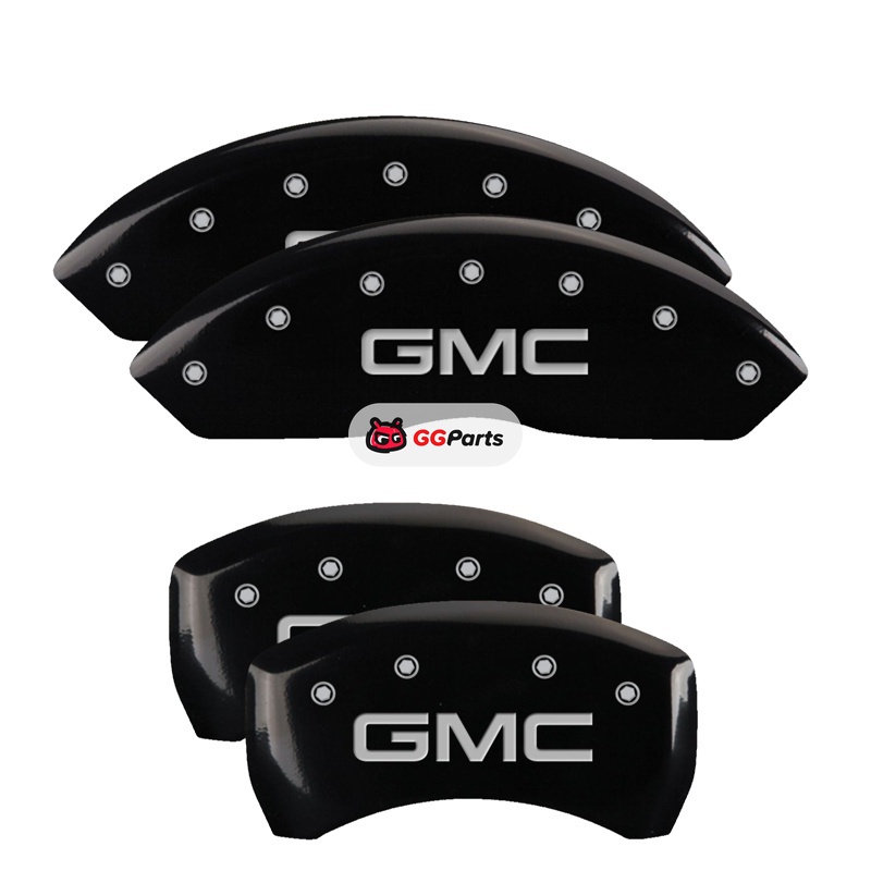 MGP 4 Caliper Covers Engraved Front & Rear GMC Black finish silver ch