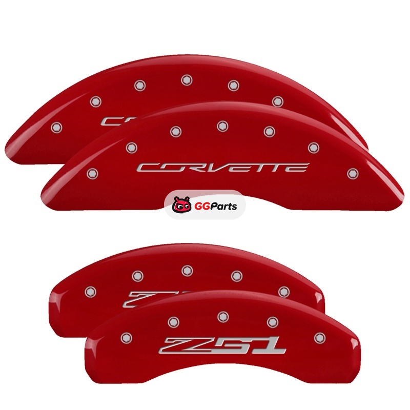 MGP 4 Caliper Covers Engraved Front Corvette C7 Engraved Rear Z51/2015 Red finish silver ch