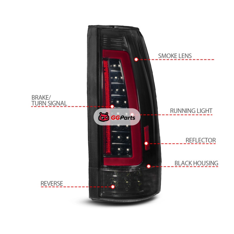 ANZO 88-99 Chevy/GMC C/K1500/2500/3500 Full LED Light Tube Taillights Black Housing Smoke Lens