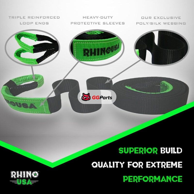 Rhino USA Recovery Tow Strap 2Inx20Ft (Black)