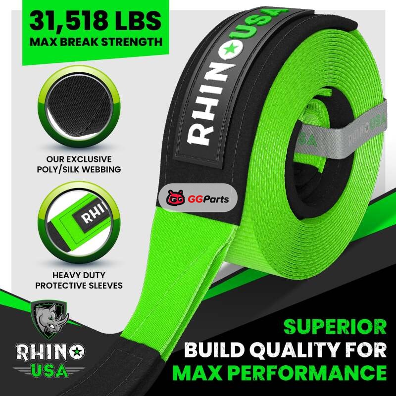 Rhino USA Recovery Tree Saver Strap 3Inx8Ft (Green)